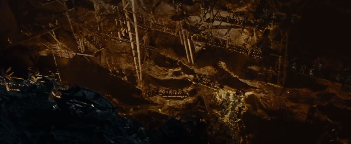 Saruman creates a machine to run a war, yet he becomes a cog in a larger machine. He loses the ability to perceive value in anything that cannot be measured or utilized. He cuts down the ancient trees of Fangorn to fuel his fires.